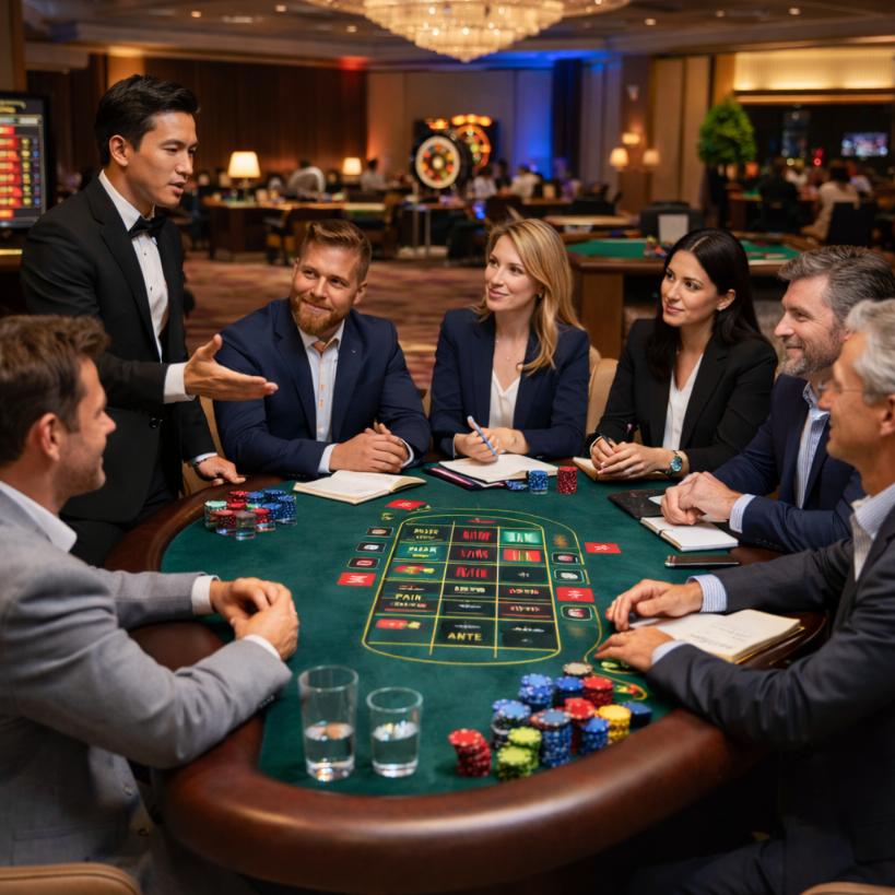 An elite brick-and-mortar casino night. Experience the glamour of a physical gaming parlor with authentic tables and high-end on-premises decor for a truly sophisticated evening.